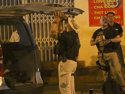 Ngoài lực lượng mật vụ theo sát Tổng thống Obama tại quán bún chả trên phố Lê Văn Hưu (Hà Nội) thì đội lính bắn tỉa và đặc nhiệm Mỹ được trang bị súng các loại liên tục dùng ống nhòm 'soi' các tòa nhà cao tầng xung quanh.