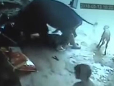 Con bò mẹ lao vào húc hai người đàn ông đang cầm dao tấn công cô gái nhưng không cứu được mạng cô.