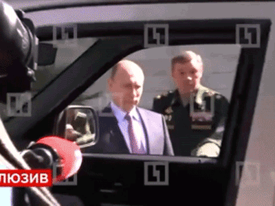 Trong lúc cố mở cửa chiếc xe quân sự UAZ Patriot cho Tổng thống Putin xem, tướng Alexander Shevchenko làm gãy cả tay nắm cửa mà cửa xe vẫn không chịu mở, khiến ông Putin phải bật cười.