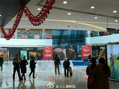 Ngay trước ngày lễ tình nhân 14.2, những cặp đôi có mặt tại trung tâm thương mại Vạn Đạt, tỉnh An Huy đã được một phen sửng sốt khi màn hình LED khổng lồ tại đây chiếu một cảnh phim cấp ba nóng bỏng.