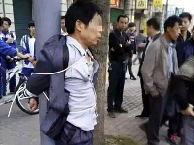 Người đàn ông họ Từ (50 tuổi, ở Trung Quốc) nhiều lần bám theo một nữ sinh. Cha mẹ nữ sinh phát hiện và bắt trói ông vào cột điện rồi đánh tới tấp, theo Mirror.