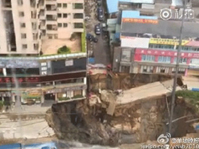 Ngày 13/8, một công trình xây dựng tàu điện ngầm ở tỉnh Quảng Đông, phía nam Trung Quốc, bất ngờ bị sập tạo thành hố tử thần khổng lồ trên đường phố.