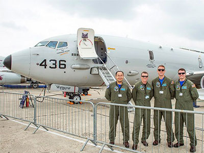 Tại triển lãm hàng không Paris Air Show 2015 ở Le Bourget, ngoại ô Paris, Pháp, Hải quân Mỹ trưng bày chiếc máy bay tuần biển và săn ngầm hiện đại P-8A Poseidon của Không đoàn tuần tra VP-5. Đặc biệt gần buồng lái máy bay dán 28 decal tàu ngầm là số tàu bị Không đoàn này dò tìm và định vị thời gian qua.