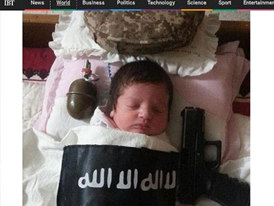 Tổ chức cực đoan Nhà nước Hồi giáo (IS) dùng cả trẻ em sơ sinh để làm công cụ tuyên truyền khi chụp ảnh một trẻ sơ sinh nằm kế bên quả lựu đạn và súng lục rồi tung lên mạng.