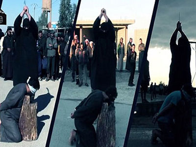Tổ chức Nhà nước Hồi giáo tự xưng (IS) kê đầu các binh sĩ Syria vào thớt gỗ và hành hình trước sự chứng kiến của dân chúng vì tội đánh bom xe khiến "người dân vô tội" thiệt mạng.