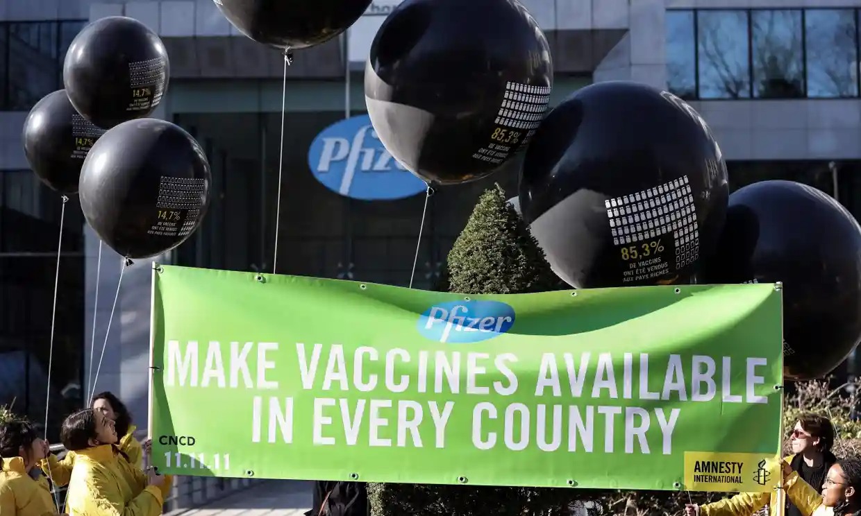 Tuần trước, 35 nhà vận động đến từ tổ chức Global Justice Now, Act-Up London, Just Treatment và Stop Aids đã biểu tình để phản đối cái gọi là "trục lợi từ đại dịch". Họ đã dùng những chiếc xe chở đầy tiền giả đến trụ sở chính của hãng Pfizer ở hạt Surrey thuộc Anh vào ngày họp cổ đông thường niên của công ty.
