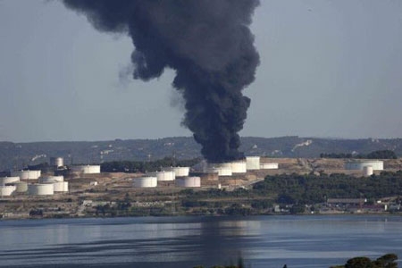 | Vụ nổ tại một nhà máy hóa dầu ở Marseille (Pháp) - Ảnh: Reuters |
