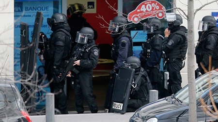 Truyền thông Pháp đưa tin một tay súng đang cố thủ trong một bưu điện ở ngoại ô Paris ngày 16-1 cùng nhiều con tin.