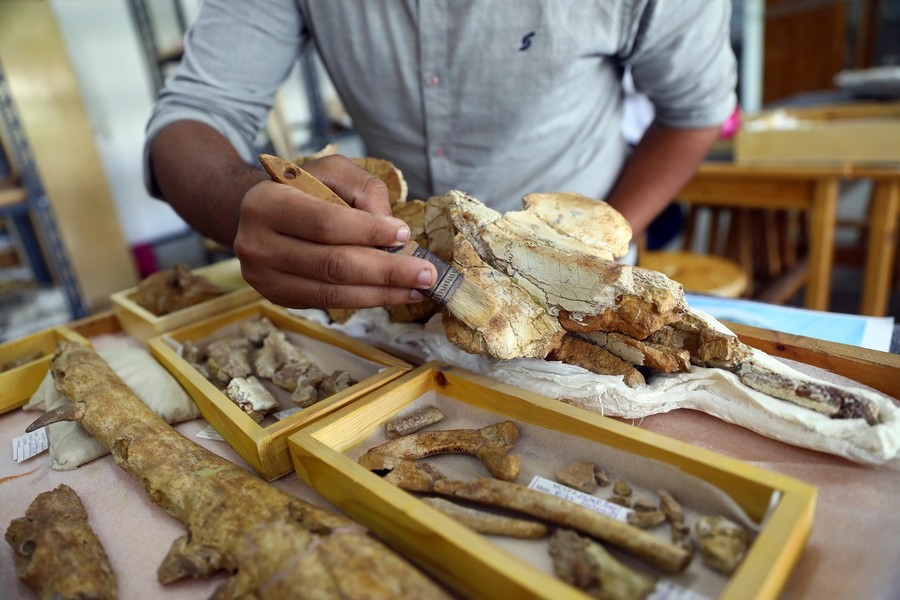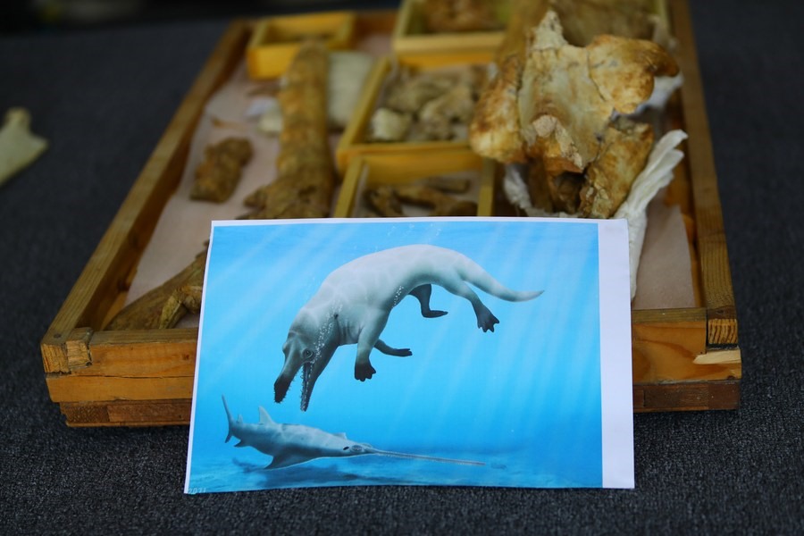 Theo Tân Hoa Xã, các mảnh xương hóa thạch bao gồm một hộp sọ lớn đã bị nứt gãy, xương hàm dưới kèm theo một số răng còn sót lại, xương sườn và đốt sống. Chúng có niên đại 43 triệu năm, thuộc về một loài cá voi lưỡng cư 4 chân cổ đại, được khai quật từ những tảng đá ở khu vực Fayum Depression, sa mạc phía tây của Ai Cập.