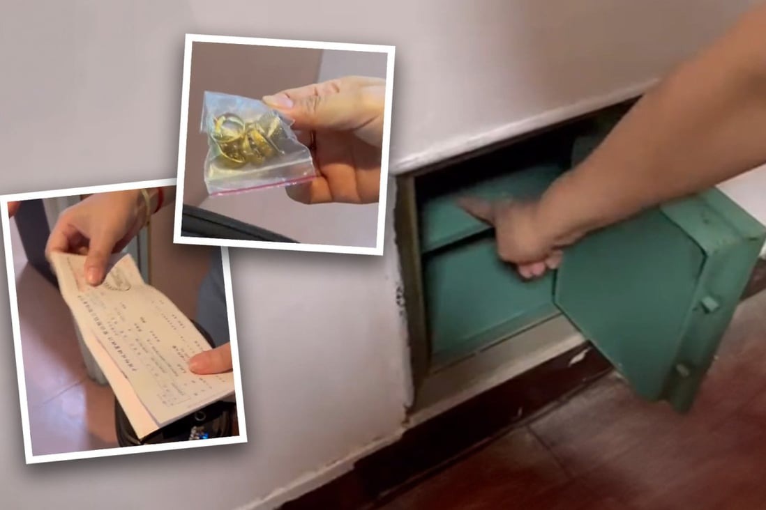 Đoạn video được chia sẻ trên mạng xã hội đại lục cho thấy, trong ngăn nhỏ có một chiếc két sắt màu xanh lá cây. Khi mở két sắt, chị Tưởng đã vô cùng sửng sốt khi tìm thấy một số đồ có giá trị bao gồm 5 sổ tiết kiệm có kỳ hạn và một loạt đồ trang sức, bao gồm cả nhẫn và dây chuyền bằng vàng. Chỉ riêng chỗ sổ tiết kiệm cũng đã có mệnh giá lên tới 400.000 nhân dân tệ (1,3 tỷ đồng).