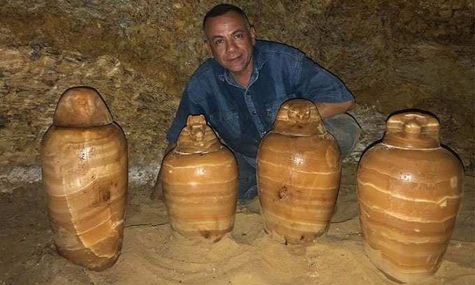 Ông Mostafa Waziri, phát ngôn viên của hội đồng Cổ vật Tối cao cho biết: "Chúng tôi vô cùng ngạc nhiên khi nhìn thấy khu chôn cất nằm trong chiếc giếng dẫn tới một căn phòng được trang trí bằng những tác phẩm chạm khắc trên đá. Ngôi mộ được bảo quản khá tốt, có cặp tượng bằng đá vôi với thiết kế mô phỏng người phụ nữ và vị thần bò Apis. Điều đặc biệt là ở ngôi mộ xuất hiện 4 chiếc lọ bằng thạch cao khắc hình con trai vị thần đầu chim ưng Horus".