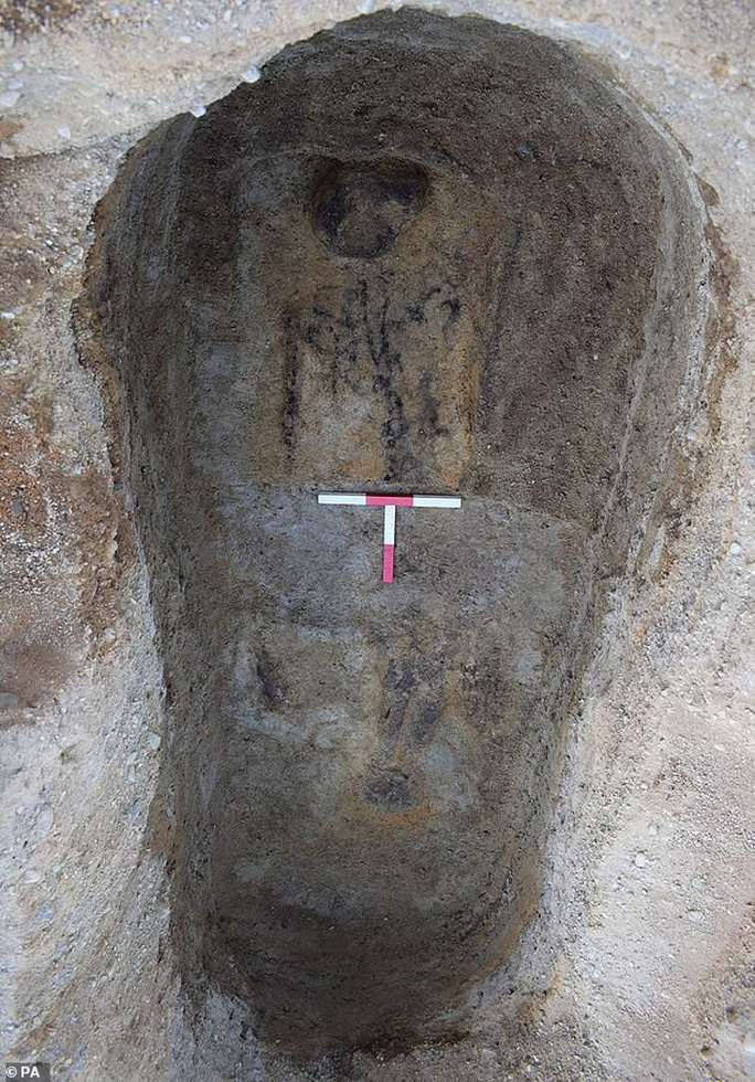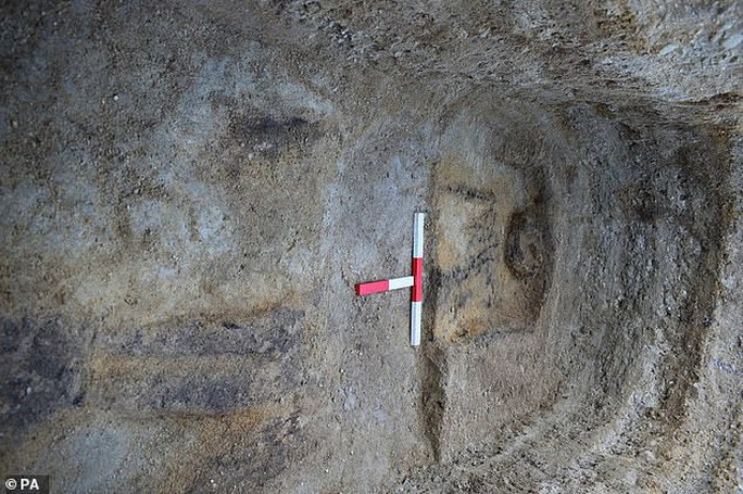 Ông Steve Birch, giám sát khảo cổ tại khu vực kể lại rằng sau khi ông phát hiện một số mảng đen lạ trên đất, ông và các cộng sự đã quyết định đào bới thêm. Nhưng họ không thấy hài cốt mà chỉ thấy những vệt đen trông như đường viền ma quái của một hài cốt được bàn tay bí ẩn nào đó vẽ trên đất.