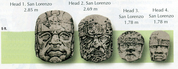 Những chiếc đầu Olmec được cho là khắc từ đá bazan núi lửa nguyên khối của núi Tuxtlas và có chiều cao dao động từ 1,47m đến 3,4m. Trước khi các khối đá được khắc, chúng được di chuyển về địa điểm khắc từ khoảng cách 300 km. Đến nay, các nhà khoa học vẫn chưa thể tìm ra được cách thức người Olmec di chuyển những khối đá nặng đến cả 20 tấn như vậy.