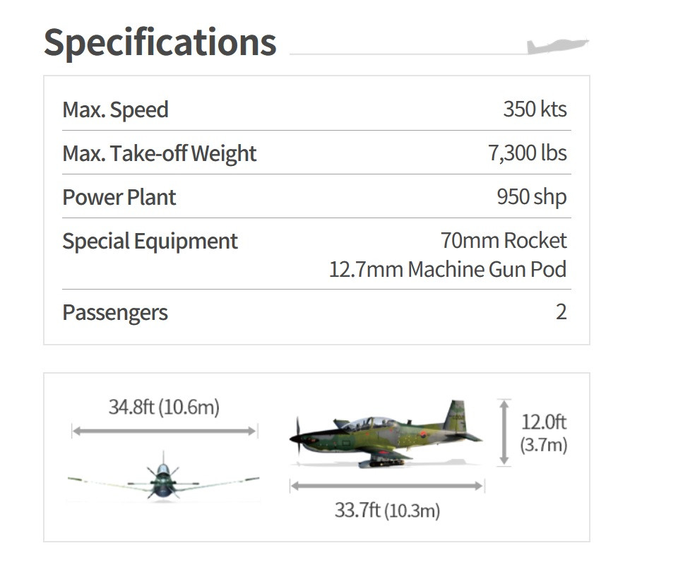 Theo trang Airforce-technology.com, KA-1 là máy bay tấn công hạng nhẹ do công ty Korea Aerospace Industries (KAI) cùng Cơ quan phát triển quốc phòng Hàn Quốc (ADD) hợp tác chế tạo từ đầu thập niên 2000, dựa trên mẫu máy bay huấn luyện KAI KT-1. KA-1 dài 10,3m; chiều dài sải cánh là 10,6m và cao 3,7m. Trọng lượng rỗng và cất cánh tối đa của KA-1 lần lượt là 1,91 tấn và 2,45 tấn.