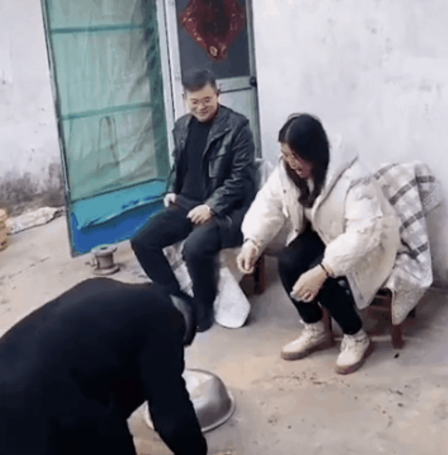 Trước đó không lâu, một cư dân mạng sống ở thị trấn Hà Trạch, tỉnh Sơn Đông (Trung Quốc) cũng chia sẻ một video chúc Tết tương tự. Sau bữa ăn đêm Giao Thừa, người này bắt đầu chúc Tết người thân với một chiếc thau màu đỏ. Anh ta vừa dập đầu xuống thì thau đỏ đã lập tức vỡ ra. Người này chia sẻ: "Bố tiếc phong bì đỏ, còn mẹ lại tiếc chiếc thau đỏ nhưng cả nhà đều cười rất vui vẻ. Chỉ có duy nhất chú cún con nằm im với vẻ mặt thất thần nhìn cả gia đình cười đùa bên nhau".