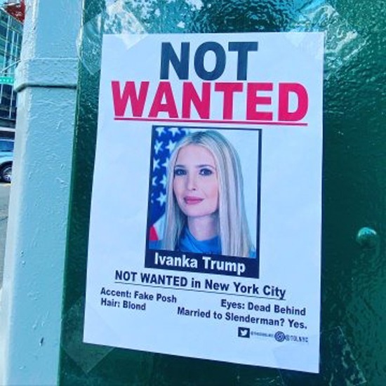 Vài tuần trước thời điểm ông Trump rời Nhà Trắng, thành phố New York - nơi vợ chồng Ivanka cư trú trước khi chuyển đến Washington bốn năm trước với vai trò cố vấn cho tổng thống - ngập tràn những tấm poster từ chối sự trở lại của Ivanka tại khu phố thượng lưu Manhattan.