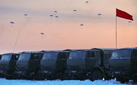 Lính Nga nhảy dù trong cuộc diễn tập ở vùng Kostroma. Ảnh: Barcroft Media |
