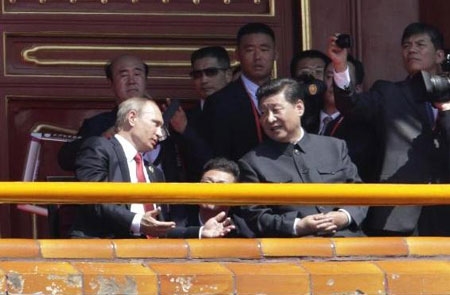 | Hai vị nguyên thủ Nga - Trung trong lễ kỷ niệm 70 năm chiến thắng phát xít ở Bắc Kinh. Ảnh: Getty Images |