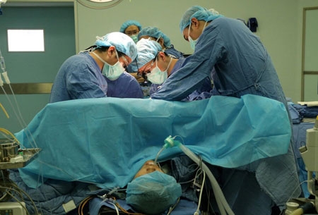 | Bác sỹ phải chỉnh lại mạch máu cho gan. Vì vậy, cuộc phẫu thuật phải kéo dài thêm gần 2,5 giờ đồng hồ nữa. Gan của Hoàng Xuyên được đưa sang phòng phẫu thuật bên cạnh, nơi con gái đang nằm. (Nguồn: QQ) |