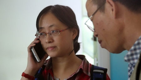 | Bác sỹ mổ chính Hạ Cường cho biết gan có chức năng tái sinh nên lá gan của người cha sẽ trở lại hình dạng ban đầu sau 6 tháng nữa, phần gan kia cũng sẽ lớn lên trong cơ thể cô bé. Hình ảnh người vợ gọi điện thông báo cho người thân sau khi ca mổ thành công. (Nguồn: QQ) |