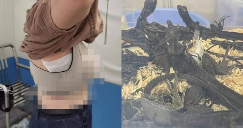 Rất nhanh, người phụ nữ bị giữ lại và bàn giao cho cơ quan chức năng liên quan. Sau khi giám định chuyên môn, cảnh sát xác định 16 con thằn lằn còn sống này là thằn lằn vây buồm Indonesia.