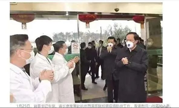 Bên cạnh đó, những hình ảnh cho thấy quan chức đeo khẩu trang chuyên dụng N95 đứng cạnh các bác sĩ sử dụng khẩu trang phẫu thuật.