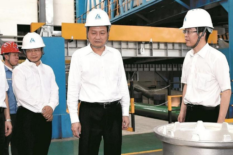 Tiêu (đứng giữa) khi còn công tác tại Nhà máy Nhôm Tây Nam. Ảnh: Baidu