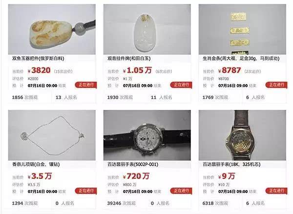 Một chiếc đồng hồ Patek Philippe có giá trị ước tính 8 triệu nhân dân tệ (RMB, tương đương 28,1 tỷ VNĐ ) được đưa lên sàn đấu giá với giá khởi điểm 7,2 triệu RMB (25,3 tỷ VNĐ) nhưng không có ai trả giá. Một chiếc dây chuyền Chanel có giá trị ước tính 35.000 RMB (123 triệu VNĐ) cũng không bán được.
