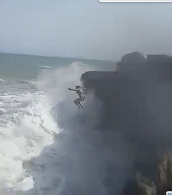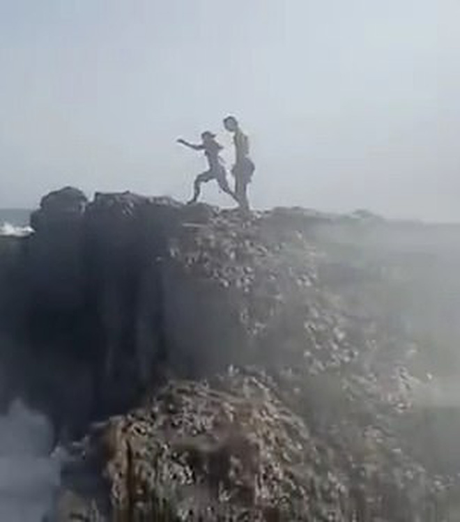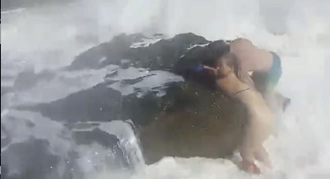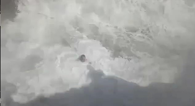 | Khoảnh khắc thảm khốc 2 người bị sóng lớn cuốn trôi ra biển |