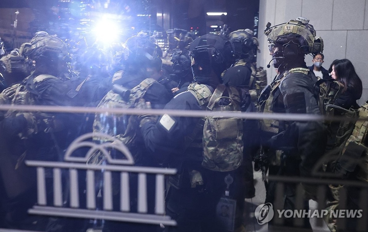 Trước đó, quân đội thiết quân luật đã tiến vào khu nhà Quốc hội Hàn Quốc và vào bên trong tòa nhà chính. Yonhap mô tả số lượng lớn người cố gắng chặn lối vào của các binh sĩ. Ba chiếc trực thăng được cho là chở các quân nhân đã bay vào khu phức hợp vào khoảng 23h46 tối ngày 3/12.