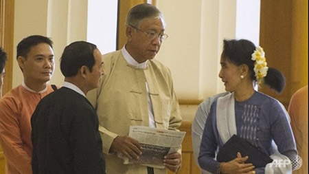 | Bà Suu Kyi và ông Htin Kyaw tại Hạ viện Myanmar |