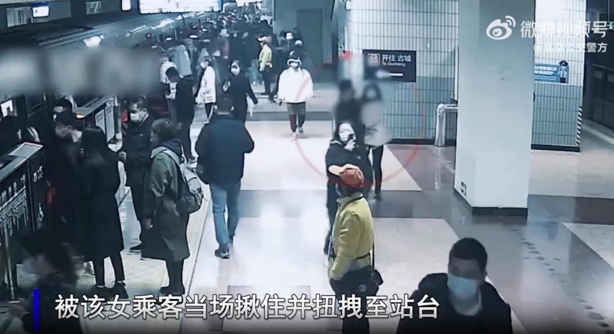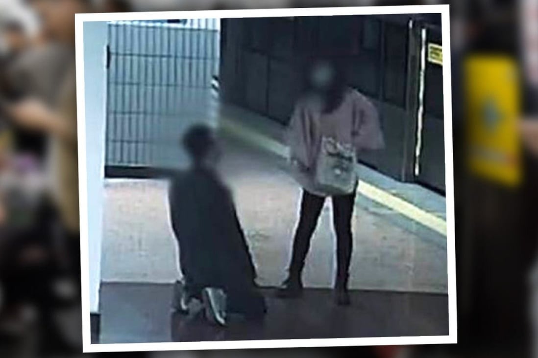 Theo đoạn phim giám sát của nhà ga, người đàn ông sau khi nghe những lời đe dọa của người phụ nữ rằng sẽ báo cảnh sát, người này đã vội quỳ gối và cầu xin: “Anh đã xin lỗi em rồi. Xin đừng hủy hoại đời anh.”