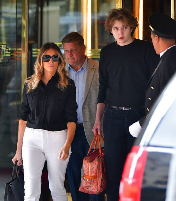 Theo những hình ảnh phóng viên tờ Daily Mail chụp lại, Barron được nhìn thấy đi cạnh mẹ, trên tay còn xách giúp bà một chiếc túi Louis Vuitton màu cam phiên bản giới hạn trong khi bà Melania đang bận đeo chiếc Hermes Birkin màu đen trị giá 11.000 USD.