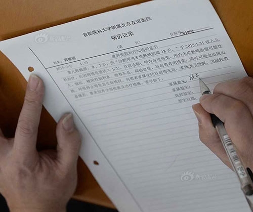 | Cha Anita run run ký vào giấy đồng ý mổ lấy nội tạng |