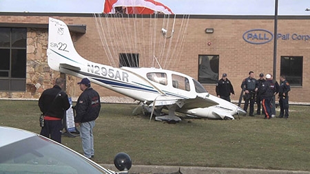 "Bám chắc vào", Louis nói với con rồi giật dù khẩn cấp trên máy bay. Chiếc máy bay rơi xuống một khu công nghiệp ở Long Island, rất may là chiếc dù đã làm giảm đáng kể tốc độ rơi của nó, giúp hai người trên khoang không bị thương. Hai bố con ra khỏi máy bay và chạy ra chỗ khác, đề phòng máy bay phát nổ.