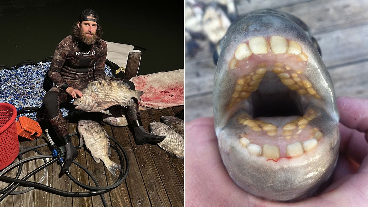 Todd Elder cho biết sau khi phát hiện con cá lớn bất thường, anh đã tiếp cận và phóng lao về phía nó và đã thành công. Khi kéo con cá khỏi mặt nước, Elder nhận ra sự kì lạ khi răng cá gần giống răng người. Đây là một con cá đầu cừu.