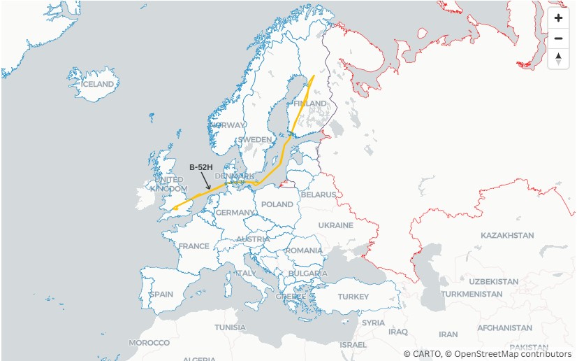 Theo Newsweek, ít nhất một trong những hành trình của hai máy bay ném bom B-52 vào ngày 25/11 đã được trang theo dõi máy bay Flightradar24 ghi lại. Chuyến bay này khởi hành từ Căn cứ Không quân Fairford ở Anh và bay về phía đông bắc, bay qua Biển Bắc, Đan Mạch và Biển Baltic trước khi đến miền trung Phần Lan.