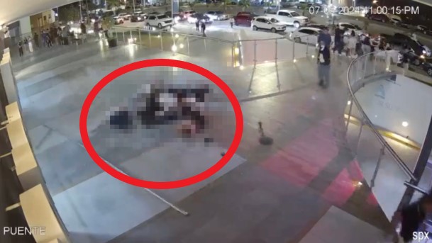 Hình ảnh do camera an ninh lắp đặt tại hiện trường ghi lại cho thấy nhiều người rơi thẳng xuống khoảng sân phía dưới hộp đêm, sau khi ban công bằng kính đổ sập.