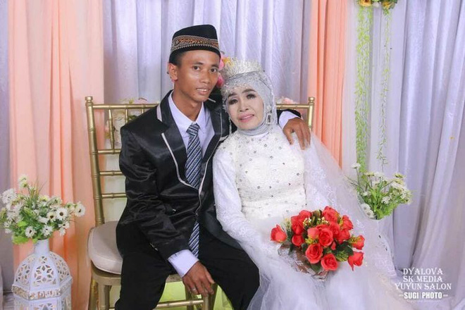 Đơn giản vì tình yêu, người phụ nữ 65 tuổi đã quyết định tái hôn với nam thanh niên kém mình 41 tuổi. Đám cưới của họ - cô dâu Tri Sutiyem và chú rể Ardi Waras - vừa được cử hành đơn giản vào hôm 5/6 trong sự chúc mừng nồng nhiệt của gia đình và bà con hàng xóm ở Lempuing, tỉnh Nam Sumatra, Indonesia.