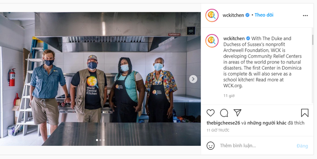 Ngay lập tức nhà Sussex đã có động thái mới. Họ tuyên bố tham gia dự án World Central Kitchen, do đầu bếp José Andrés sáng lập. Đây là Trung tâm cứu trợ cộng đồng ở các khu vực chịu nhiều tổn thương do thiên tai gây ra ở trên thế giới. Trung tâm đầu tiên được xây dựng ở Dominica thuộc Khối thịnh vượng chung Caribe đã hoàn thành.