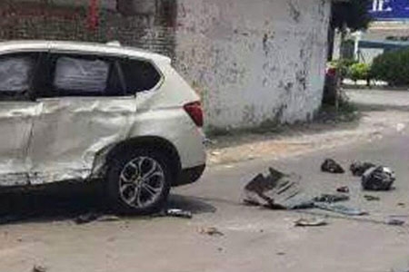 | Chiếc BMW méo mó tại hiện trường. |