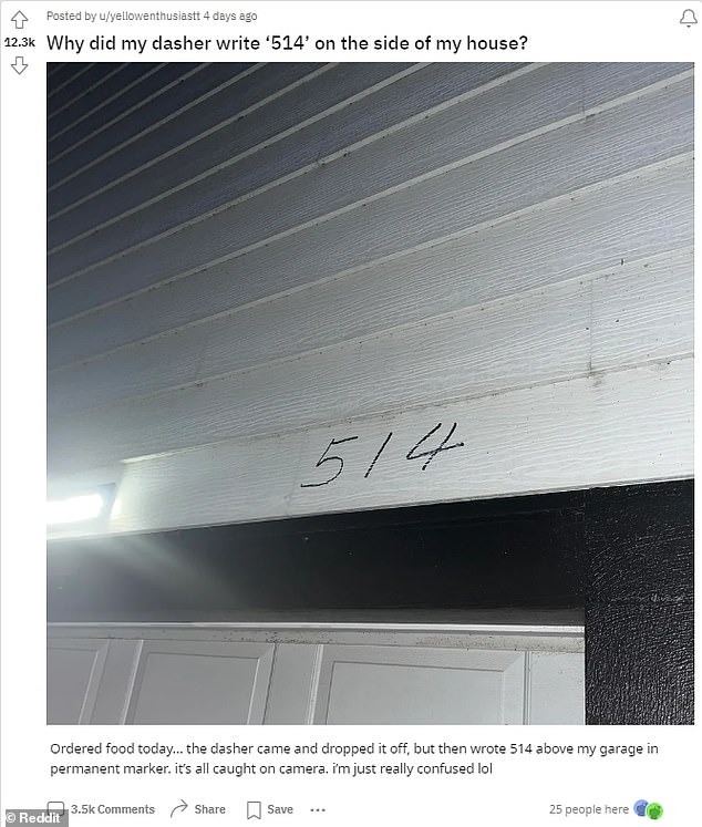 Theo Daily Mail, mới đây, một thành viên diễn đàn Reddit đã đăng tải một video ngắn kèm câu hỏi đầy thắc mắc để nhờ sự giúp đỡ của cộng đồng mạng. Bản thân cô không thể hiểu được dãy số kỳ lạ mà nam shipper đã viết ở trước nhà khi giao đồ ăn đến.
