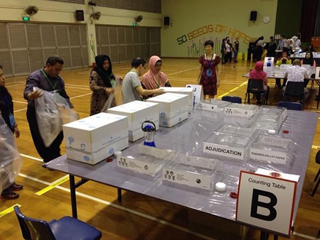 Công tác kiểm phiếu đang được tiến hành sau cuộc tổng tuyển cử ở Singapore. Ảnh: Channel News Asia |