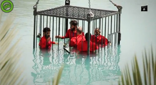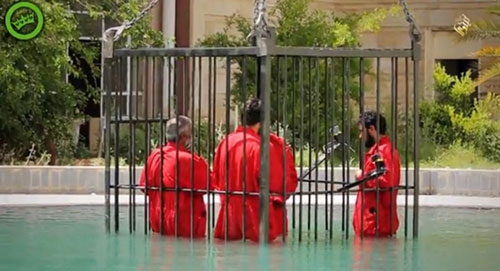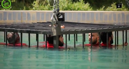 Những người đàn ông bị giết trong các video mới nhất được cho là "gián điệp". Những phần tử thánh chiến trước khi dìm chết những người đàn ông còn gắn bên ngoài song sắt hai camera nhằm ghi lại cái chết đau đớn của những người đàn ông trong nước đục.
