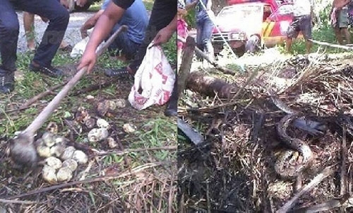 | Tìm thấy 6 con trăn và ổ trứng 200 quả trong vườn |