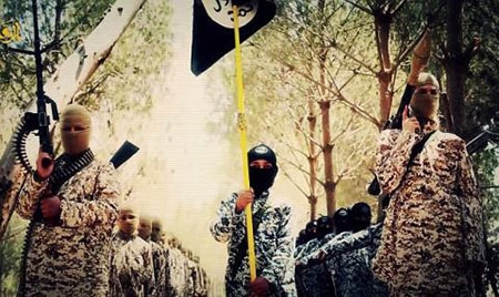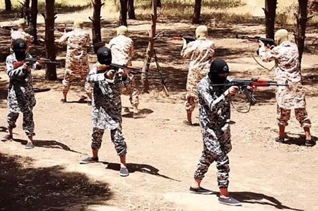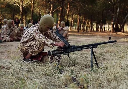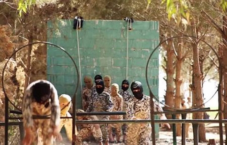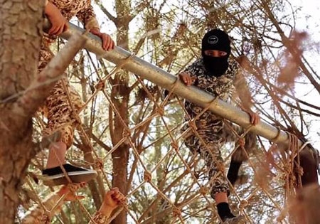 | IS rất tự hào về các trại huấn luyện chiến binh nhí kiểu này. Tổ chức thường đăng tải hình ảnh lính trẻ con tập luyện chiến đấu, gọi các em là "những đứa con của vương quốc Hồi giáo" |