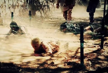 | Bò dưới dây thép gai là một phần trong các hoạt động tập luyện |