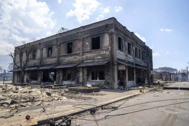 "Vài ngoại lệ hiếm hoi, còn lại hầu hết thị trấn Lahaina đã bị thiêu rụi" - Thống đốc Hawaii Josh Green nói khi cùng Thị trưởng Maui Richard Bissen đi thị sát hiện trường đám cháy rừng - "Cảm giác như một quả bom đã được thả xuống Lahaina".