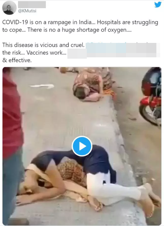 Đoạn clip được chú thích là khung cảnh kinh hoàng tại Ấn Độ trong đợt bùng phát Covid-19 lần 2. Thậm chí, tờ New York Post cũng đã sử dụng hình ảnh một người phụ nữ ngã gục trong đoạn clip trên để lấy hình minh họa cho bài viết về cuộc khủng hoảng Covid-19 ở Ấn Độ với tiêu đề: "Covid-19 tăng đột biến, 'nuốt chửng' người dân Ấn Độ".