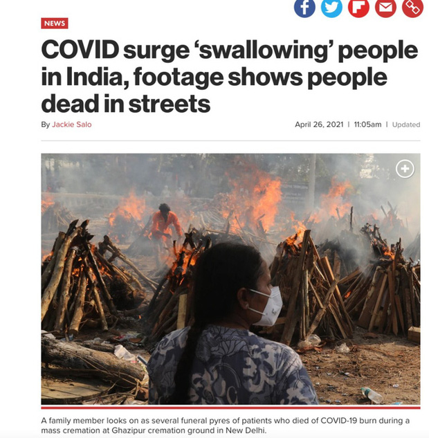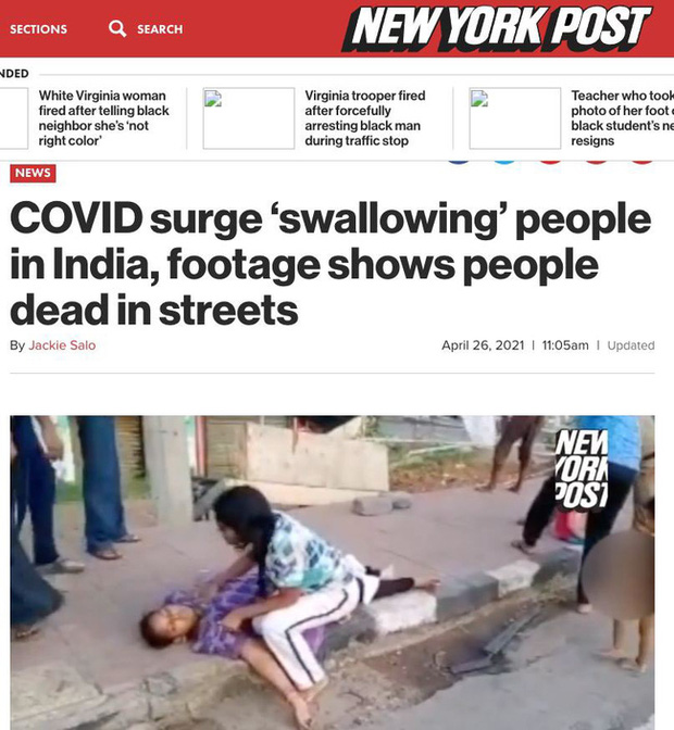 Tờ báo này cũng cho hay có nhiều người chết vì Covid-19 trên đường phố ở Ấn Độ và bị bỏ mặc. Tuy nhiên ngay sau đó, trang tin này phải thay hình ảnh khác và sửa lại thông tin sau khi nhiều trang tin Ấn Độ đăng tải sự thật đằng sau clip gây bão ở trên.